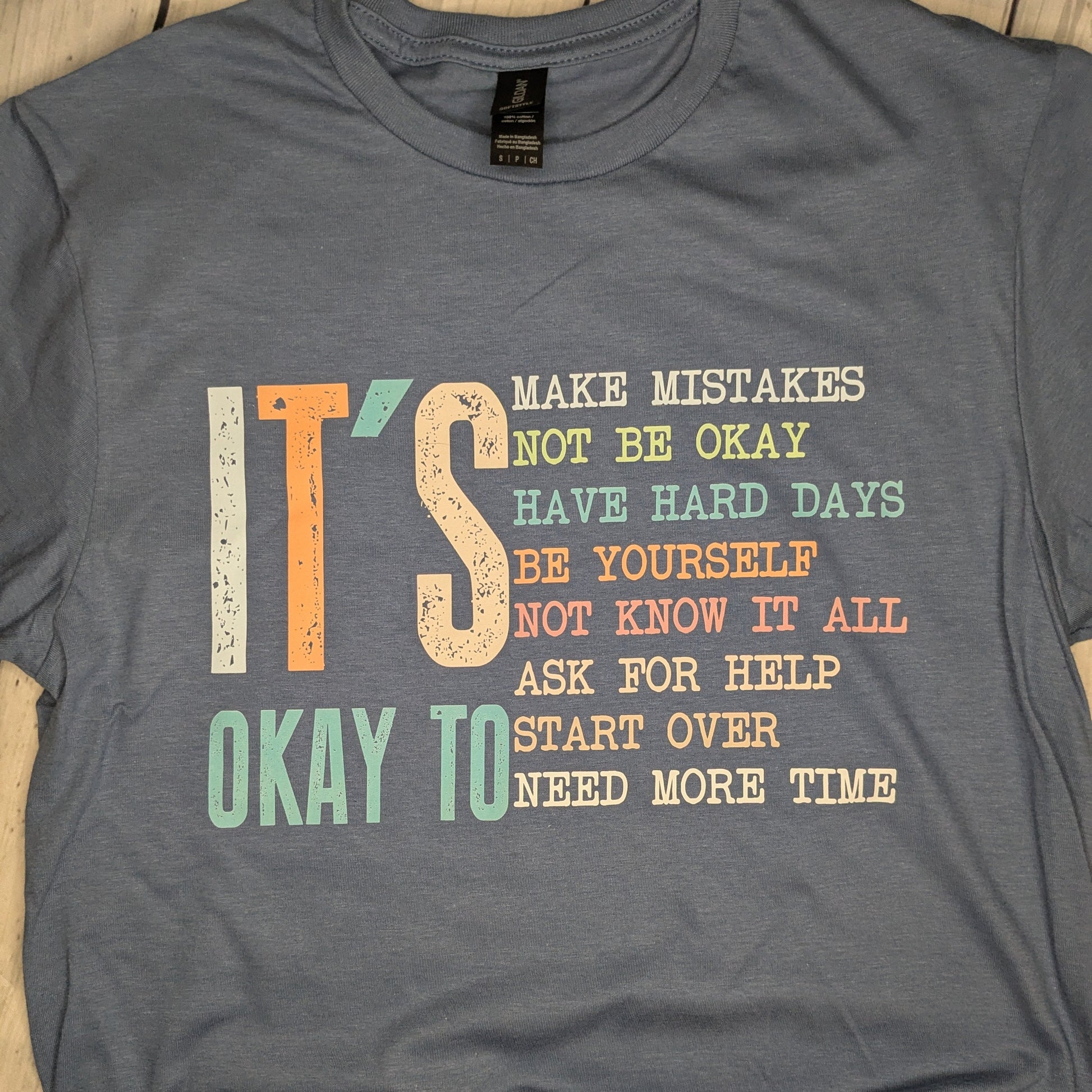 The "It's Okay to" soft t-shirt offers a compassionate reminder that struggling is a natural part of mental health. Made from gentle, breathable fabric, it provides comfort while promoting awareness and acceptance. This shirt is ideal for anyone seeking to express support and understanding in a subtle, meaningful way.
