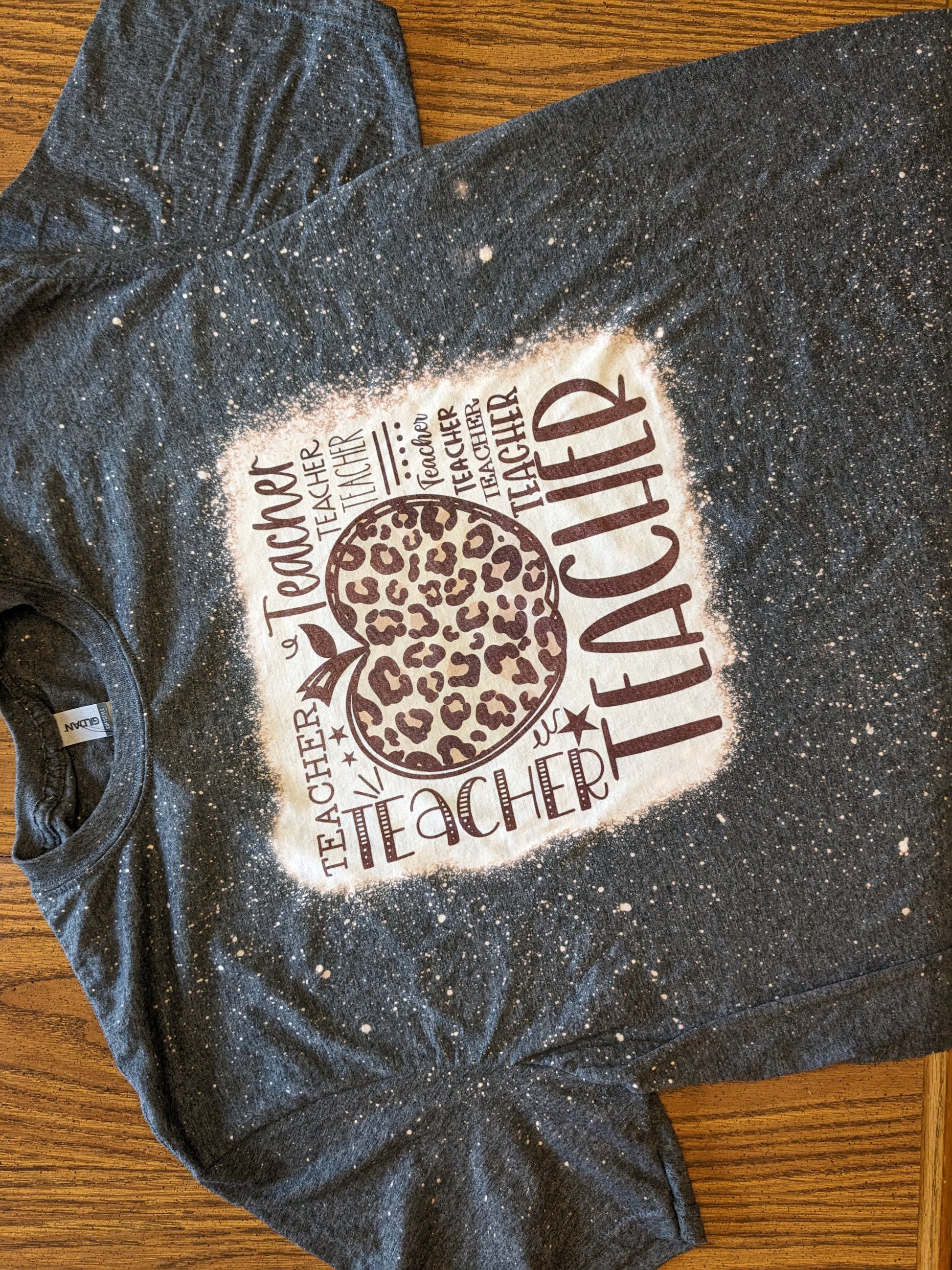 -Every shirt is unique. The bleach and splatter pattern will vary between shirts and designs.